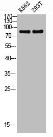 • Western blot analysis of K562 293T lysis using Phospho-Raf-B (S446) antibody.