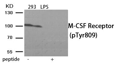 免疫原:Peptide sequence around phosphorylation site of tyrosine 809 (S-N-Y(p)-I-V) derived from Human M-CSF Receptor.