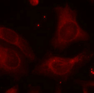 Immunofluorescence staining of methanol-fixed Hela cells using NFkB-p105(Phospho-Ser927) Antibody.
