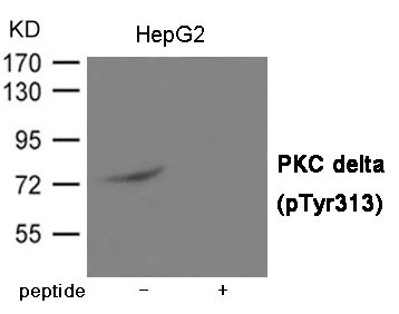 免疫原:Peptide sequence around phosphorylation site of Tyrosine 313(G-I-Y(p)-Q-G) derived from Human PKC delta.