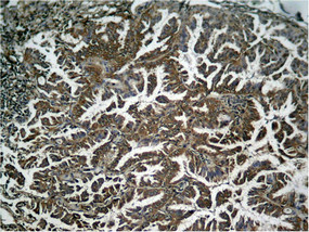 Immunohistochemical analysis of paraffin-embedded human Lung carcinoma tissue using NFκB-p65 (Phospho-Ser536) Antibody.