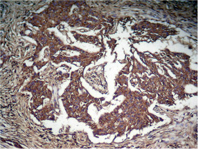 • Immunohistochemical analysis of paraffin-embedded human Lung carcinoma tissue using STAT3 (Phospho-Tyr705) Antibody.