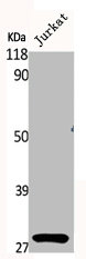 • Western Blot analysis of Jurkat cells using Phospho-14-3-3 ζ (S58) Polyclonal Antibody
