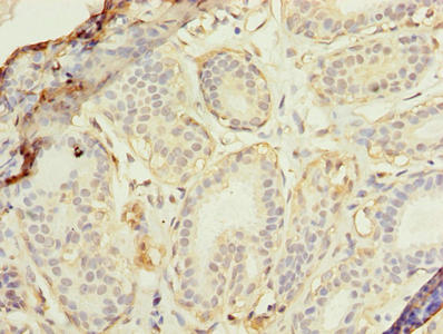 Immunohistochemistry of paraffin-embedded human breast cancer using CSB-PA019260LA01HU at dilution of 1:100