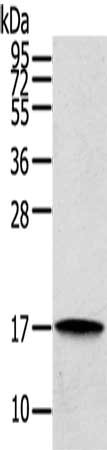 Gel: 12%SDS-PAGE, Lysate: 40 μg, Lane: Human cecum carcinoma tissue, Primary antibody: CSB-PA094733(REG3A Antibody) at dilution 1/200, Secondary antibody: Goat anti rabbit IgG at 1/8000 dilution, Exposure time: 5 seconds