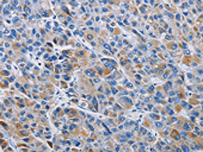 • The image on the left is immunohistochemistry of paraffin-embedded Human liver cancer tissue using CSB-PA917257(RICTOR Antibody) at dilution 1/50, on the right is treated with fusion protein. (Original magnification: ×200)