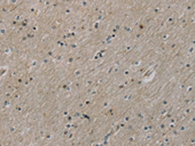 • The image on the left is immunohistochemistry of paraffin-embedded Human brain tissue using CSB-PA121728(ROBO4 Antibody) at dilution 1/25, on the right is treated with fusion protein. (Original magnification: ×200)