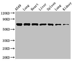 Positive WB detected in: A549 whole cell lysate, Rat lung tissue, Mouse heart tissue, Mouse liver tissue, Mouse spleen tissue, Mouse lung tissue, Mouse kidney tissue