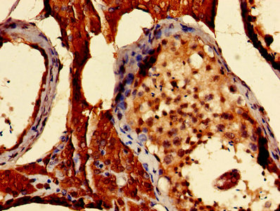 Immunohistochemistry of paraffin-embedded human testis tissue using CSB-PA853418LA01HU at dilution of 1:100