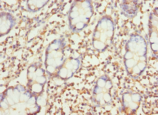 • Immunohistochemistry of paraffin-embedded human small intestine tissue using CSB-PA873630ESR2HU at dilution of 1:100