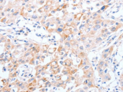 • The image on the left is immunohistochemistry of paraffin-embedded Human breast cancer tissue using CSB-PA166219(SCARB1 Antibody) at dilution 1/30, on the right is treated with synthetic peptide. (Original magnification: ×200)