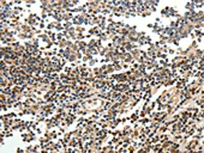 • The image on the left is immunohistochemistry of paraffin-embedded Human tonsil tissue using CSB-PA269266(SERPINF1 Antibody) at dilution 1/15, on the right is treated with fusion protein. (Original magnification: ×200)