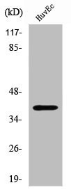 • Western Blot analysis of HuvEc cells using Sideroflexin-4 Polyclonal Antibody