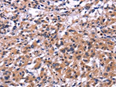 The image on the left is immunohistochemistry of paraffin-embedded Human brain tissue using CSB-PA571675(SIGLEC5 Antibody) at dilution 1/30, on the right is treated with fusion protein. (Original magnification: ×200)