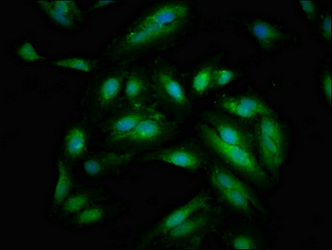 Immunofluorescent analysis of Hela cells using CSB-PA021330LA01HU at dilution of 1:100 and Alexa Fluor 488-congugated AffiniPure Goat Anti-Rabbit IgG(H+L)