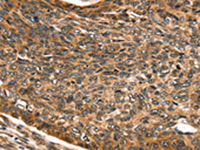 • The image on the left is immunohistochemistry of paraffin-embedded Human esophagus cancer tissue using CSB-PA932063(SKIL Antibody) at dilution 1/30, on the right is treated with fusion protein. (Original magnification: ×200)