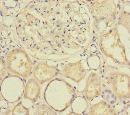 Immunohistochemistry of paraffin-embedded human kidney tissue using CSB-PA835673ESR2HU at dilution of 1:100