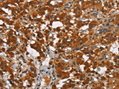 • The image on the left is immunohistochemistry of paraffin-embedded Human thyroid cancer tissue using CSB-PA022161(SMAD9 Antibody) at dilution 1/40, on the right is treated with synthetic peptide. (Original magnification: ×200)