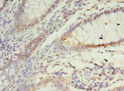Immunohistochemistry of paraffin-embedded human colon cancer using CSB-PA892358LA01HU at dilution of 1:100