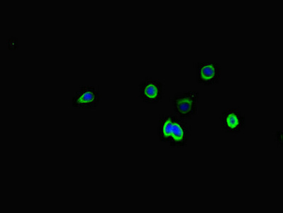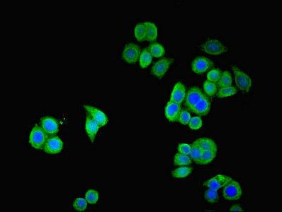 • Immunofluorescent analysis of PC-3 cells using CSB-PA022725LA01HU at dilution of 1:100 and Alexa Fluor 488-congugated AffiniPure Goat Anti-Rabbit IgG(H+L)