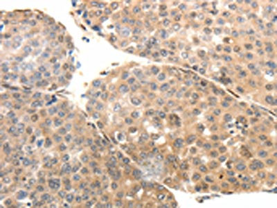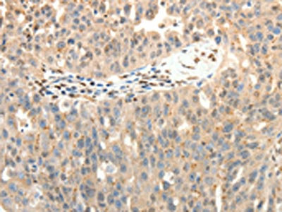 The image on the left is immunohistochemistry of paraffin-embedded Human liver cancer tissue using CSB-PA592388(SYT7 Antibody) at dilution 1/15, on the right is treated with fusion protein. (Original magnification: ×200)