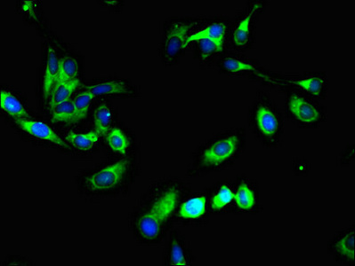 • Immunofluorescent analysis of Hela cells using CSB-PA803115LA01HU at dilution of 1:100 and Alexa Fluor 488-congugated AffiniPure Goat Anti-Rabbit IgG(H+L)