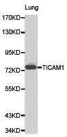 • Western blot analysis of lung cell lysate using TICAM1 antibody.