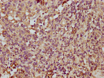 • IHC image of CSB-PA023720LA01HU diluted at 1:350 and staining in paraffin-embedded human ovarian cancer performed on a Leica BondTM system. After dewaxing and hydration, antigen retrieval was mediated by high pressure in a citrate buffer (pH 6.0). Section was blocked with 10% normal goat serum 30min at RT. Then primary antibody (1% BSA) was incubated at 4°C overnight. The primary is detected by a biotinylated secondary antibody and visualized using an HRP conjugated SP system.