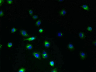 Immunofluorescent analysis of A2780 cells using CSB-PA023842LA01HU at dilution of 1:100 and Alexa Fluor 488-congugated AffiniPure Goat Anti-Rabbit IgG(H+L)