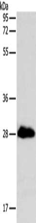 • Gel: 12%SDS-PAGE, Lysate: 40 μg, Lane: Mouse heart tissue, Primary antibody: CSB-PA133116(TNNI3 Antibody) at dilution 1/175, Secondary antibody: Goat anti rabbit IgG at 1/8000 dilution, Exposure time: 10 seconds