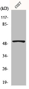 • Western Blot analysis of COS7 cells using p53 Polyclonal Antibody