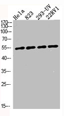 免疫原:Synthesized peptide derived from Human p53 around the non-phosphorylation site of S378.