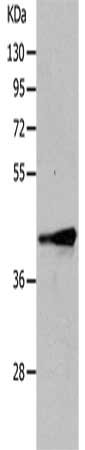 Gel: 10%SDS-PAGE, Lysate: 40 μg, Lane: Human fetal muscle tissue, Primary antibody: CSB-PA168065(TRIM63 Antibody) at dilution 1/1050, Secondary antibody: Goat anti rabbit IgG at 1/8000 dilution, Exposure time: 50 seconds
