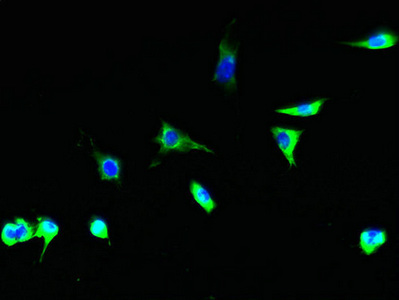 • Immunofluorescent analysis of Hela cells using CSB-PA00935A0Rb at dilution of 1:100 and Alexa Fluor 488-congugated AffiniPure Goat Anti-Rabbit IgG(H+L)