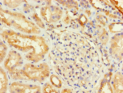• Immunohistochemistry of paraffin-embedded human kidney tissue using CSB-PA00935A0Rb at dilution of 1:100