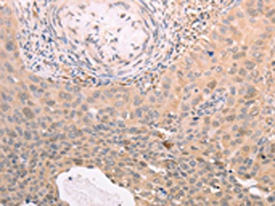 The image on the left is immunohistochemistry of paraffin-embedded Human cervical cancer tissue using CSB-PA973727(TXN Antibody) at dilution 1/30, on the right is treated with synthetic peptide. (Original magnification: ×200)
