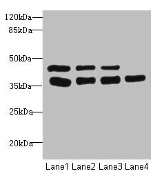 All lanes: UBE2Z antibody at 3.37µg/ml