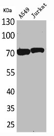 • Western Blot analysis of A549 Jurkat cells using Ku-70 Polyclonal Antibody