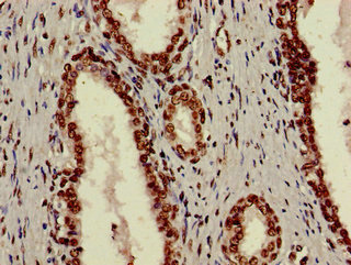 • Immunohistochemistry of paraffin-embedded human prostate cancer using CSB-PA01617A0Rb at dilution of 1:100