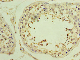 • Immunohistochemistry of paraffin-embedded human testis tissue using CSB-PA896882ESR2HU at dilution of 1:100
