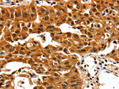 • The image on the left is immunohistochemistry of paraffin-embedded Human lung cancer tissue using CSB-PA179192(YWHAB Antibody) at dilution 1/30, on the right is treated with synthetic peptide. (Original magnification: ×200)