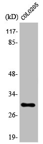 • Western Blot analysis of COLO205 cells using 14-3-3 ζ Polyclonal Antibody