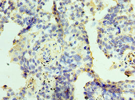 Immunohistochemistry of paraffin-embedded human testis tissue using CSB-PA026511ESR2HU at dilution of 1:100