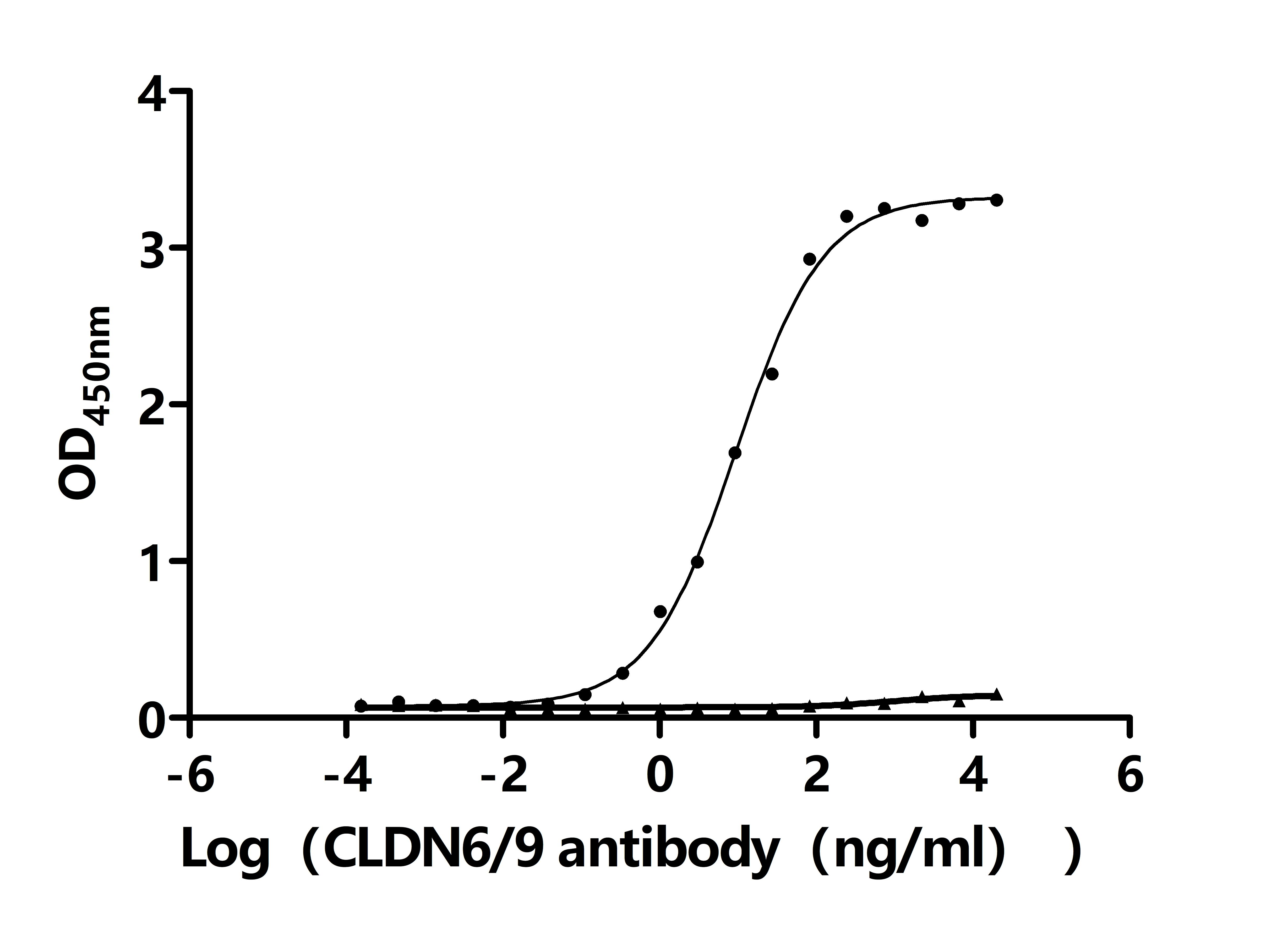 Activity: Measured by its binding ability in a functional ELISA. Immobilized Human CLDN6 (CSB-MP005508HU(A4)) at 10 μg/mL can bind Anti-CLDN6-9 recombinant antibody. The EC50 is 1.189-1.618 ng/mL. The VLPs (CSB-MP3838) is negative control. -