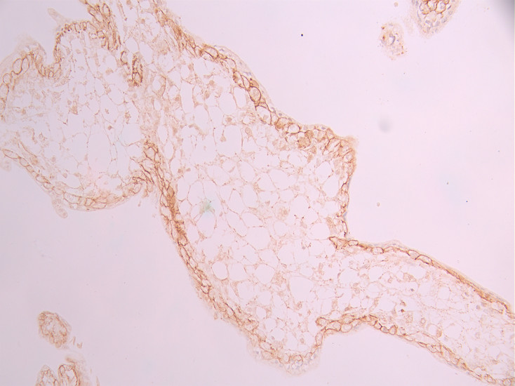 IHC image of CSB-RA268308A0HU diluted at 1:100 and staining in paraffin-embedded human placenta tissue performed on a Leica BondTM system. After dewaxing and hydration, antigen retrieval was mediated by high pressure in a citrate buffer (pH 6.0). Section was blocked with 10% normal goat serum 30min at RT. Then primary antibody (1% BSA) was incubated at 4°C overnight. The primary is detected by a Goat anti-rabbit polymer IgG labeled by HRP and visualized using 0.05% DAB.