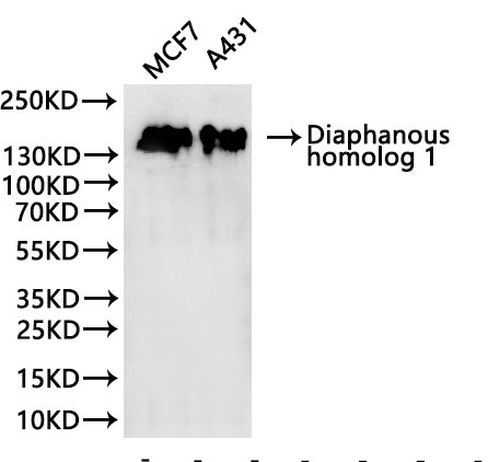 All lanes: Diaphanous homolog 1 antibody at 1:1000