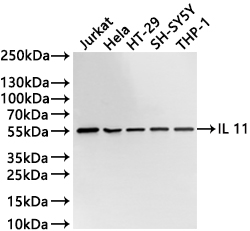 Positive WB detected in: Jurkat whole cell lysate(30μg), Hela whole cell lysate(30μg), HT-29 whole cell lysate(30μg), SH-SY5Y whole cell lysate(30μg), THP-1 whole cell lysate(30μg)