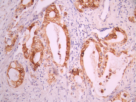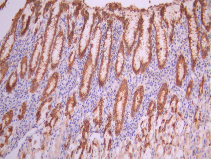 組織特異性:Highly expressed in surface mucosal cells of respiratory tract and stomach epithelia. Overexpressed in a number of carcinomas. Also expressed in Barrett's esophagus epithelium and in the proximal duodenum.