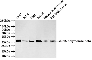 Positive WB detected in: K562 whole cell lysate(30μg), PC-3 whole cell lysate(30μg), Hela whole cell lysate(30μg), Jurkat whole cell lysate(30μg), Mouse brain tissue lysate(30μg), Rat brain tissue lysate(30μg)