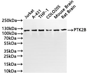 別名:CADTK antibody; CAK-beta antibody; CAKB antibody; CAKbeta antibody; Calcium regulated non receptor proline rich tyrosine kinase antibody; Calcium-dependent tyrosine kinase antibody; Cell adhesion kinase beta antibody; E430023O05Rik antibody; EC 2.7.10.2 antibody; FADK 2 antibody; FADK2 antibody; FAK2 antibody; FAK2_HUMAN antibody; Focal adhesion kinase 2 antibody; MGC124628 antibody; PKB antibody; Proline-rich tyrosine kinase 2 antibody; Protein kinase B antibody; Protein Tyrosine Kinase 2 Beta antibody; Protein-tyrosine kinase 2-beta antibody; PTK antibody; PTK2B antibody; PTK2B protein tyrosine kinase 2 beta antibody; PYK2 antibody; RAFTK antibody; RAFTK2 antibody; Related adhesion focal tyrosine kinase antibody